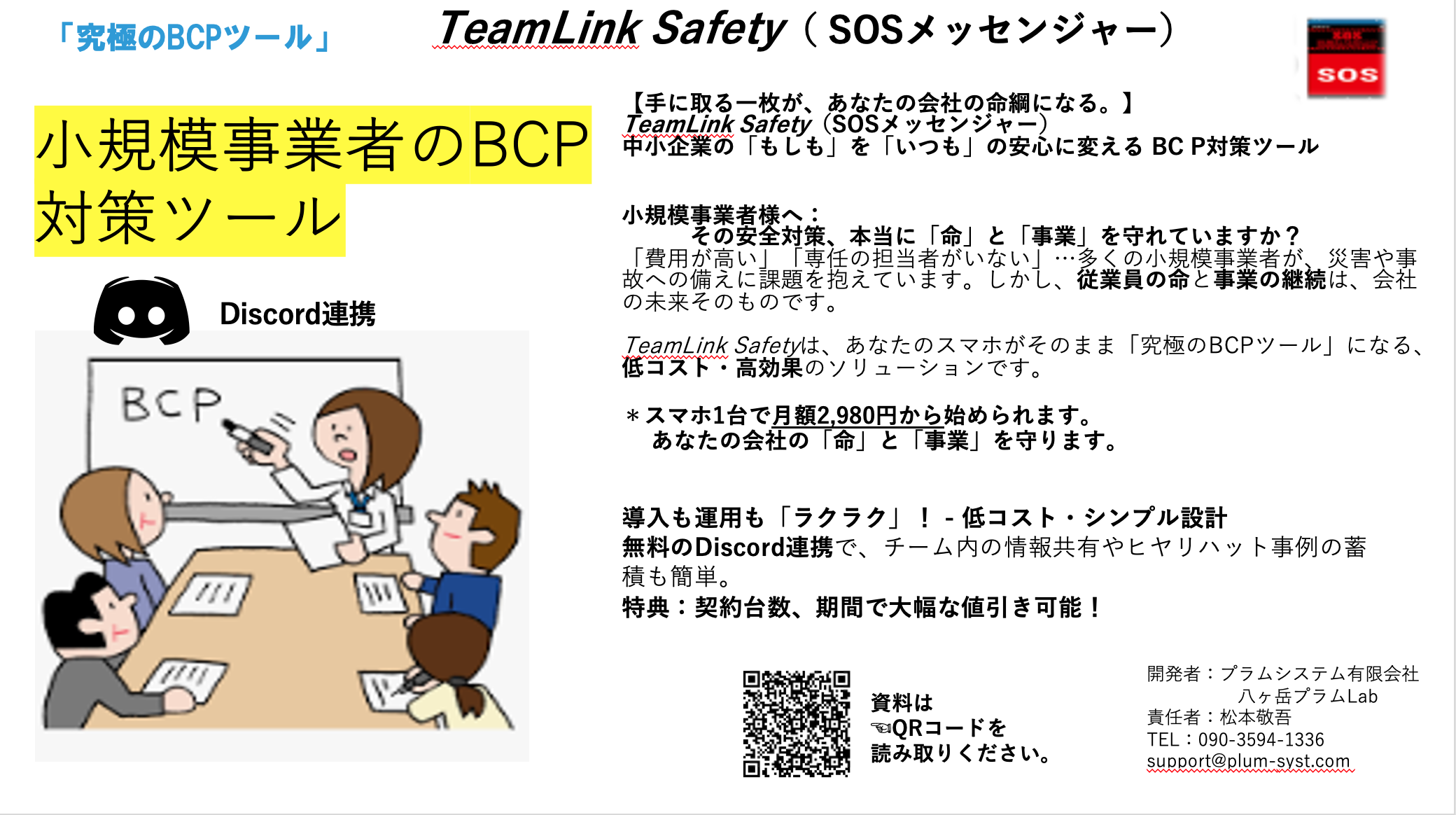 小規模事業者向けBCPシステム「SOS messenger」 *Androidスマホ専用