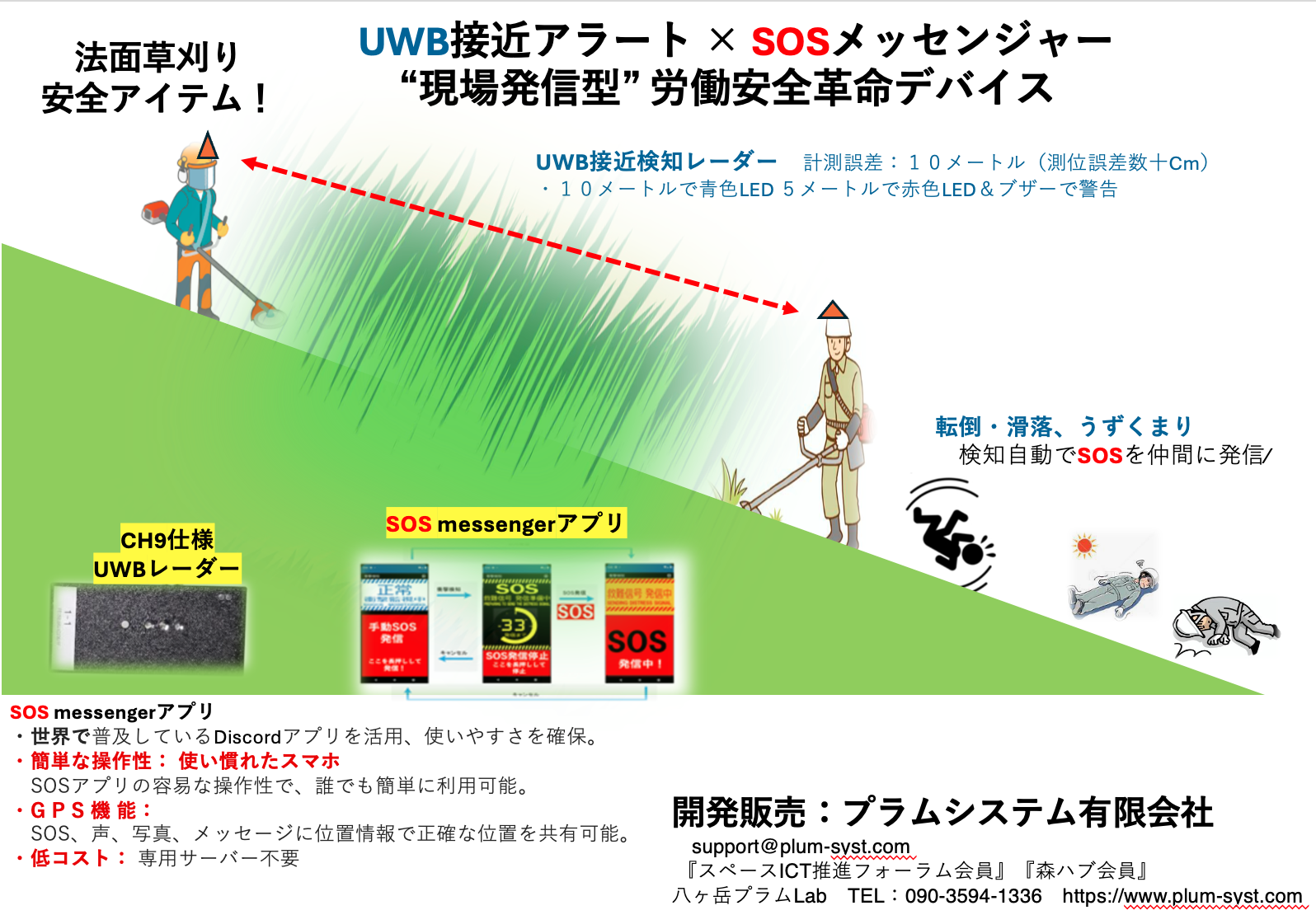 SOS messengerアプリとUWB接近アラートの組み合わせ。
